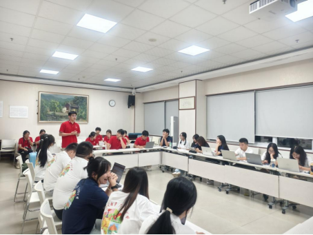 活动开场,三校团队负责人分别致辞,随后嘉兴南湖学院学院的指导教师付晓豪以“红船精神引领下的办学与育人实践”为题,深情分享了学校的红色创校背景。他介绍,作为红船启航地的高校,嘉兴南湖学院始终将红色基因融入办学血脉,商贸学院更是通过“红色案例教学”“革命精神主题实践”等方式,培养学生的责任担当与团队协作能力,让红色文化成为师生成长的精神养分。这一分享让在场师生深刻感受到红色教育对团队凝聚力塑造的重要意义。